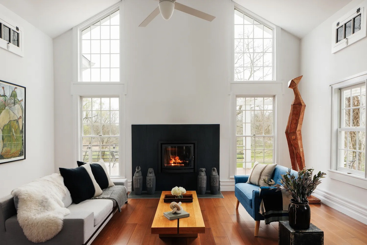 Kipp Farm is nestled on two parcels encompassing 40.6 acres with hills, fields, stone walls, bridges, ponds and woods. The Greek Revival-style home offers four bedrooms and six bathrooms and features original pine floors throughout. The one-bedroom carriage house contains an office and has its own deck. The red barns houses a personal gym, storage space with a separate entrance, a Tesla car charger, and spacious vaulted ceilings. The barns encircle a heated pool. Listed at $2,650,000 by Corcoran Country Living.