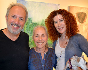 Ann Vartanian, volunteer coordinator at the Spencertown Academy, with the artist; Tom Werman and Suky Werman, owners of Stonover Farm Bed and Breakfast, with jewelry designer Margo Morrison and Ella, an Italian Greyhound.