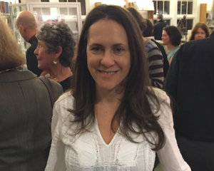 Leslie Elias, artistic director of the Grumbling Gryphons, buys multiple copies of Dunham's book; Willa Neubauer is happy with just one.