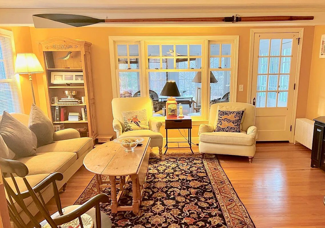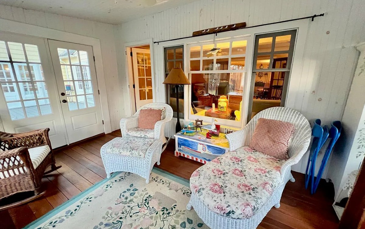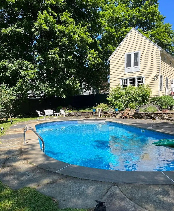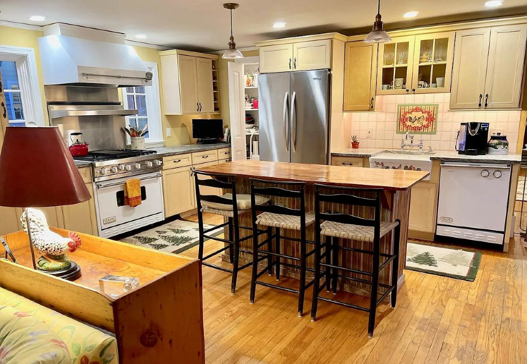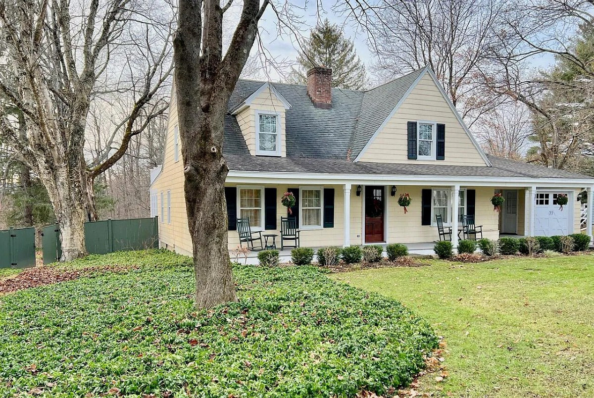 A Cape-style home close to Lenox Village offers four bedrooms and three bathrooms in 3,199 square feet. It features a kitchen/great room, formal living and dining rooms, an office (or first-floor bedroom) and a den. There is a three-season porch and deck. The private yard includes a Goshen stone patio, fire pit and walls surrounding an in-ground pool. Listed at $1,599,900 by Piretti Real Estate.