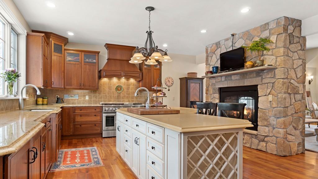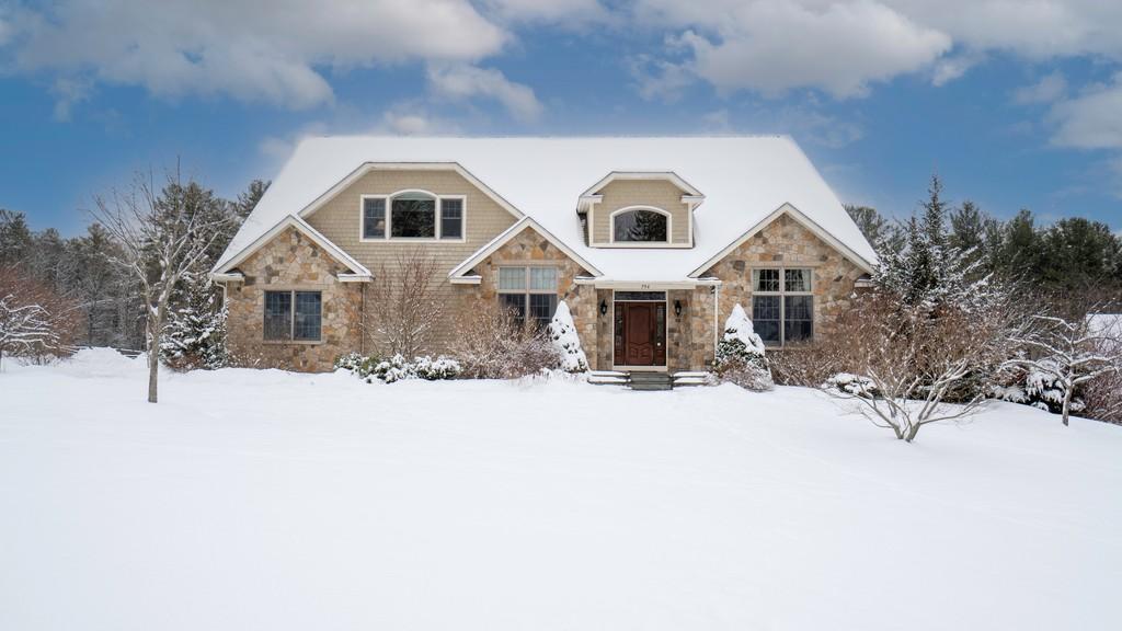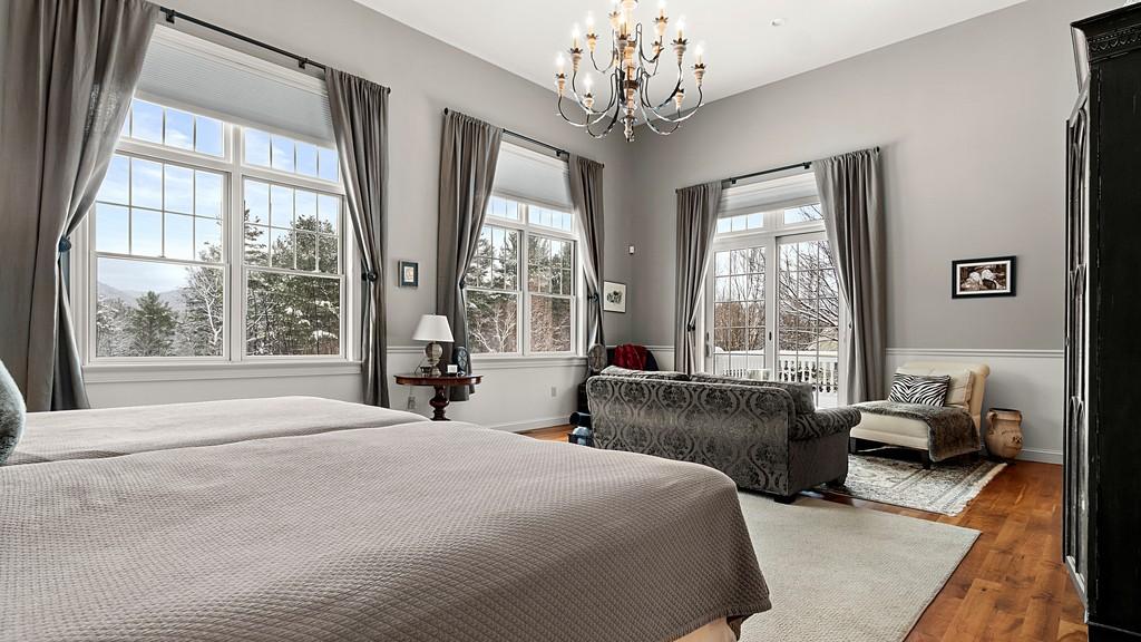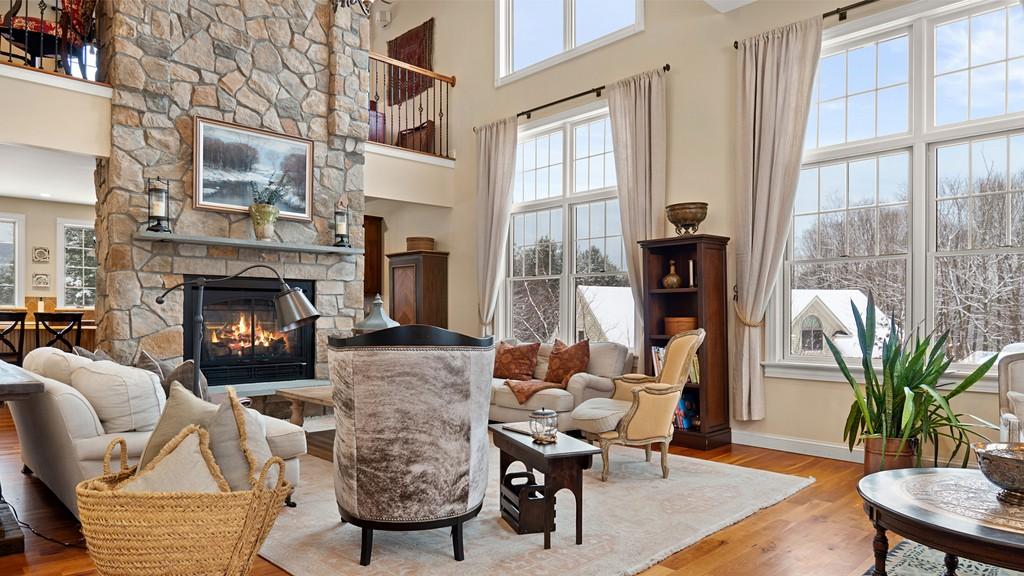 This spacious home in Lenox has four bedrooms, four bathrooms and sits on four acres. There are over 6,000 square feet with three levels of living. The first-floor primary bedroom has soaring high ceilings and mountain views from every window. There's a double-sided stone gas fireplace in the great room that opens to a chef's kitchen. The lower level walks out to a stone patio with a buiit-in pizza oven and grill. The self-cleaning pool has a waterfall. Listed at $1,599,000 by William Pitt Julia B Fee Sotheby's International Realty.