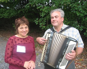 Mellisa Sarris with accordion player Brian Dewan; Megan Caponetto and host committee member (and neighbor) Koethi Zan.