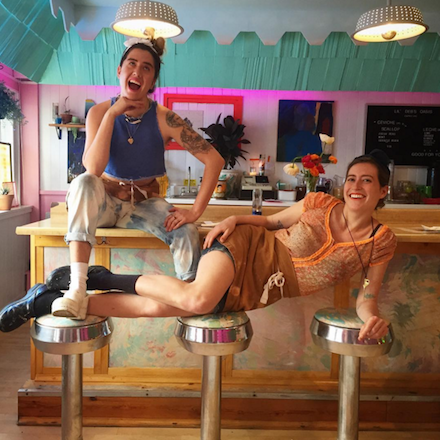 By Jamie LarsonLil’ Deb’s Oasis, in Hudson, New York, is a hard restaurant to define. And that’s enticing. Painted up like a tiki bar, yet still retaining the comfort of a local diner, Oasis feels fresh and relevant in a way you might intellectualize a modern art exhibit. And that’s intentional. Run for 20 years as Debbie’s Lil’ Restaurant, owner Debbie Fiero handed the keys to Hannah Black and Carla Perez-Gallardo, who splashed the walls with bright pastel pinks and greens and blues, draping the place in art and texture. “It’s an overall food experience,” says Black. “It’s an ever-evolving art installation platform. We are creating our own language.”