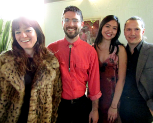 Davon Rainey, one of the evening's performers, with R.B. Schlather, Jesse Hart and Tom Taylor.