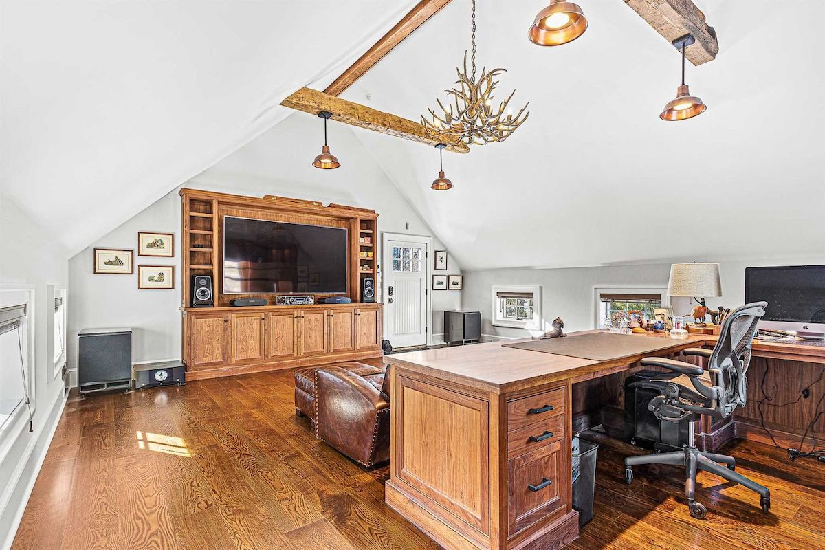 Just a stone's throw from Millbrook village center, this contemporary has three bedrooms and three bathrooms, high ceilings and large windows. The country kitchen has a fireplace and wet bar. French doors lead to the brick patio and inground heated pool. The lower level has a climate-controlled wine cellar. Listed at $1,050,000 by Compass.