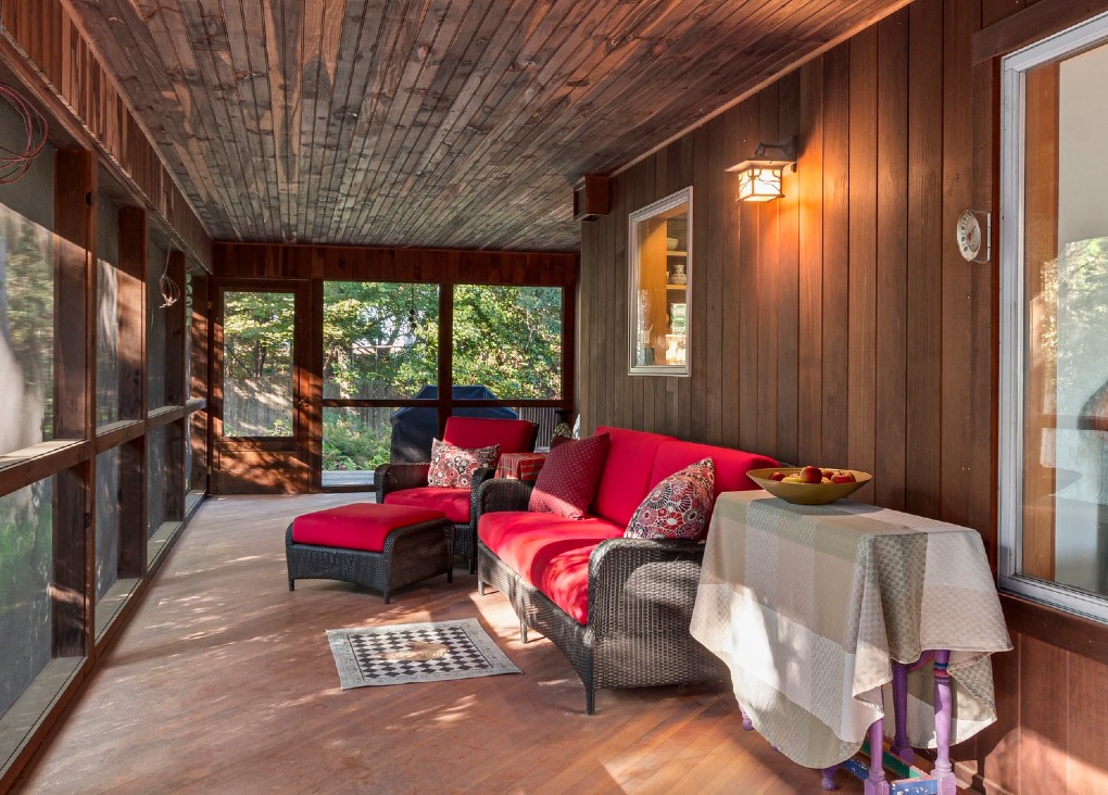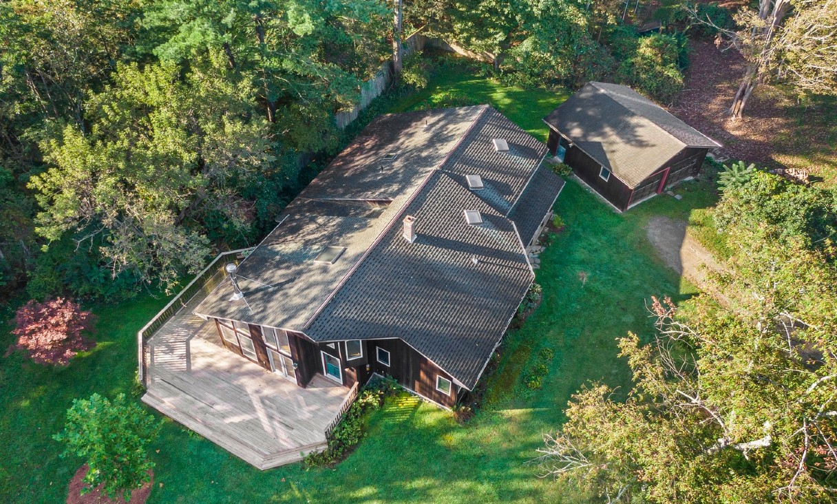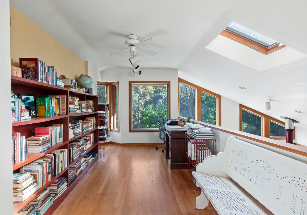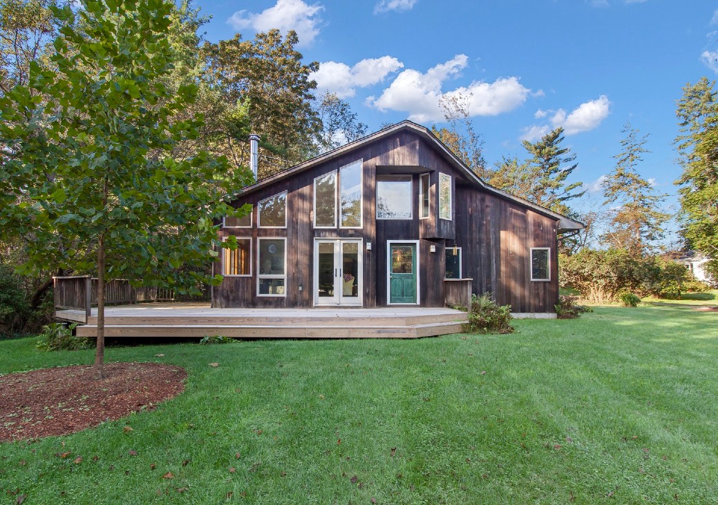Situated on 1.4 private acres in Ancram, the home has three bedrooms and two bathrooms. There is a large deck off the living room connecting with a spacious screened-in porch off the dining room, plus a smaller deck off the back of the home. There are custom built-ins in the dining room. The second floor has an office/library loft overlooking the living room. Listed at $495,000 by Brown Harris Stevens.