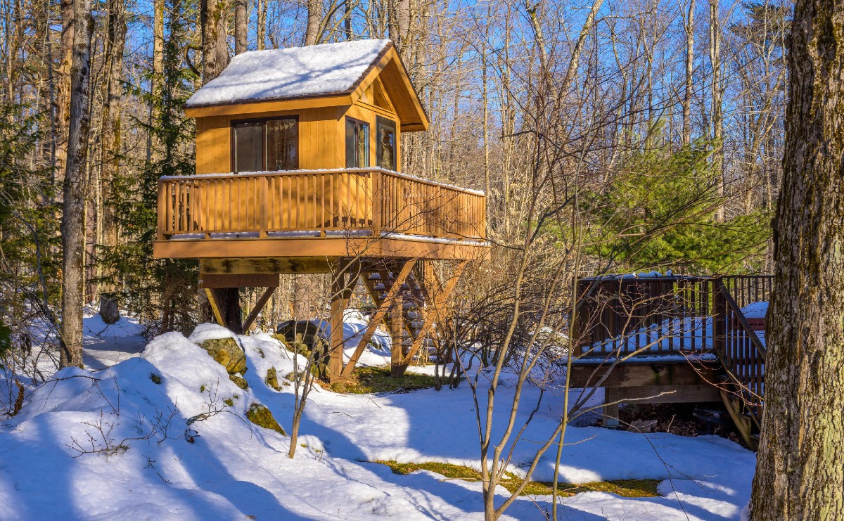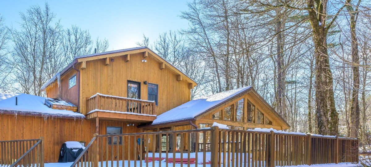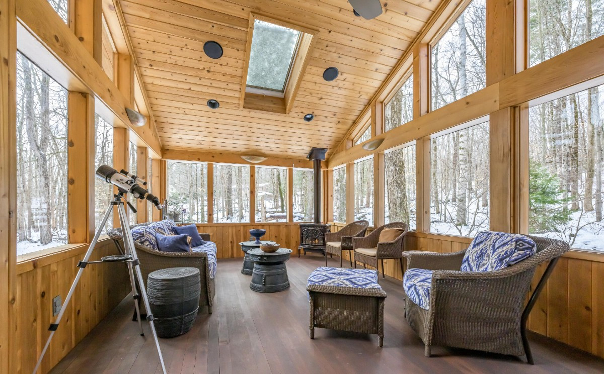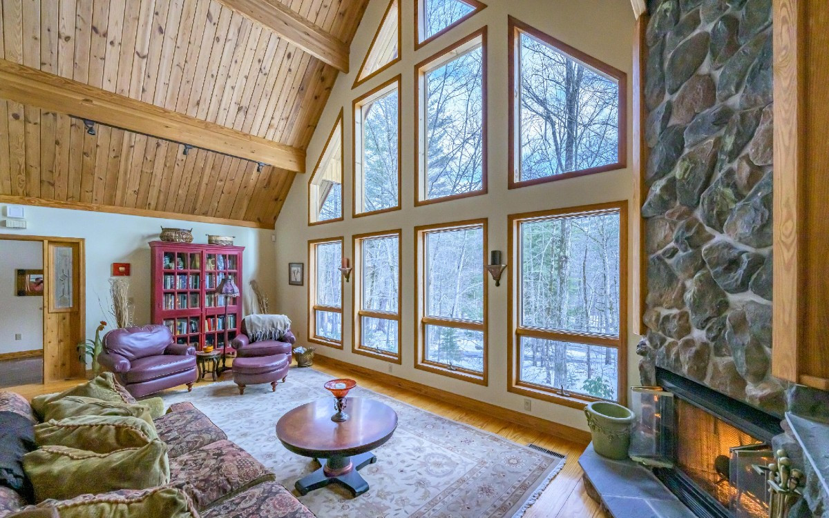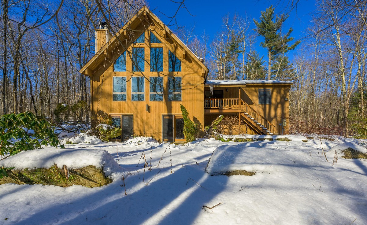 Situated on over two acres in Becket, this Contemporary comes with its own unique "treehouse." The three-story home offers three bedrooms and three bathrooms, floor-to-ceiling windows, a fieldstone fireplace and a renovated chef's kitchen. The back yard includes an expansive deck with an inground hot tub. Listed at $705,000 by Roberts & Associates Realty, Inc.