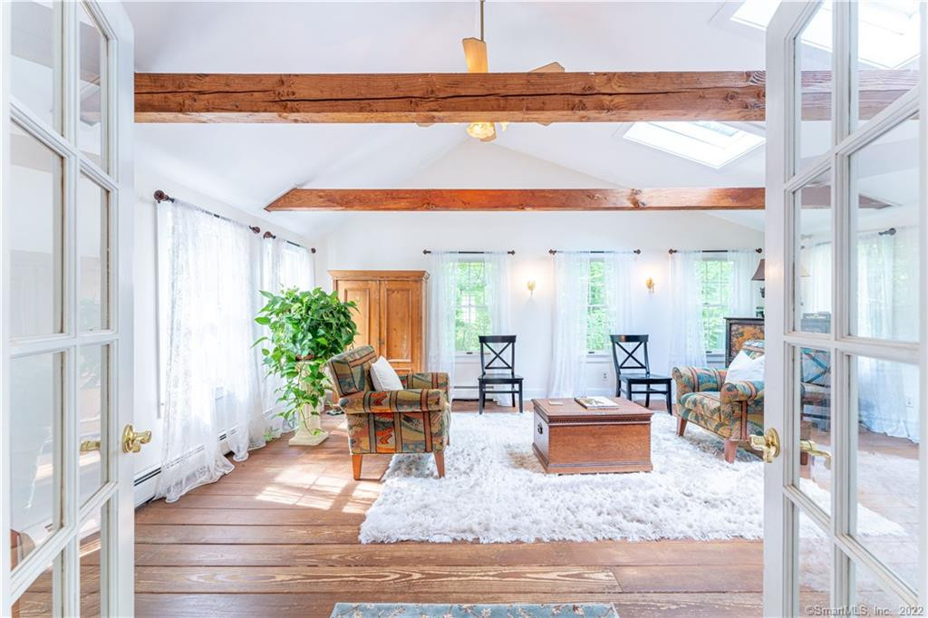 This three-bedroom, two-bathroom Colonial in Litchfield was built in 1890 but has been remodeled and updated over the years, including a kitchen with granite countertops. There is a formal living area with a wood stove. A two-car garage offers second-floor space potential. The location places it close to town and NYC. Listed at $459,000 by Re/Max Prime Realty.