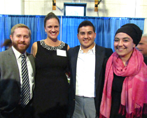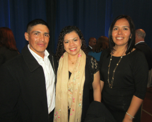 LitNet students Jorge Aguilar, Milagro Diaz, who was featured in the evening's film, and Julia Antunez; Rick Carpenter, Jennifer Galvagni, Diane DeGiacomo and photographer Jack Poore.