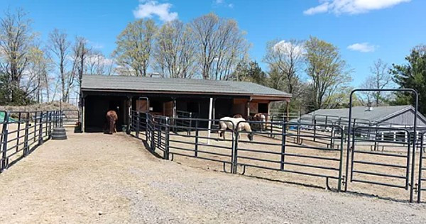 Currently being used as a horse property that's been updated with a six-stall barn, Little Brook Farm has on its 20 acres a Contemporary with three bedrooms and four bathrooms, a screened porch and magnificent views. The property includes two ponds and mature gardens. Listed at $1,350,000 by Klemm Real Estate.