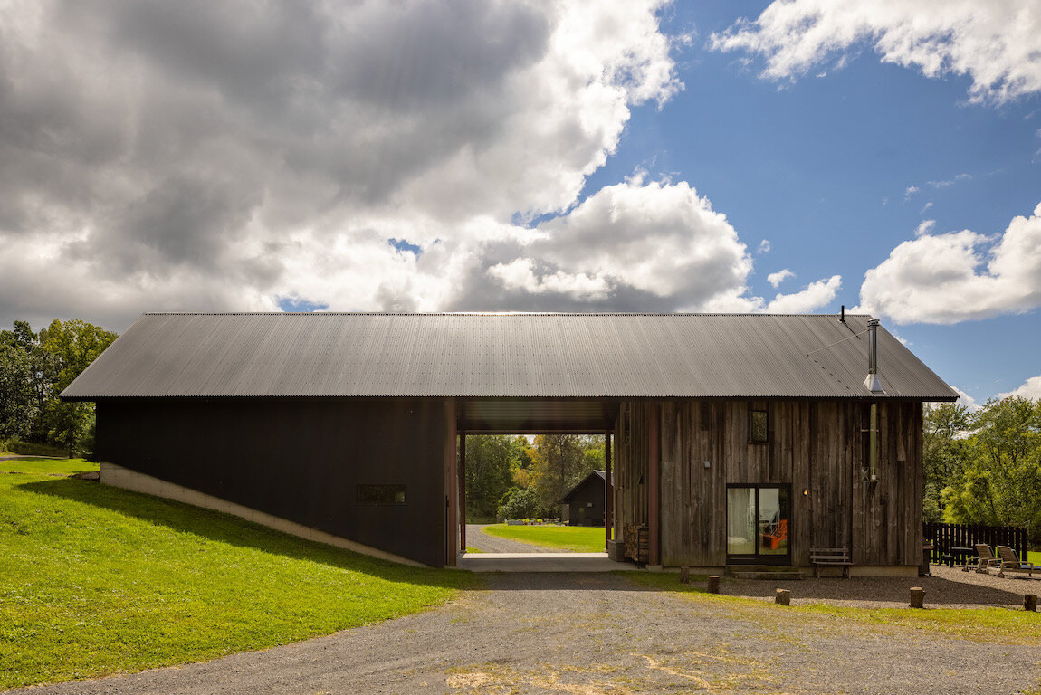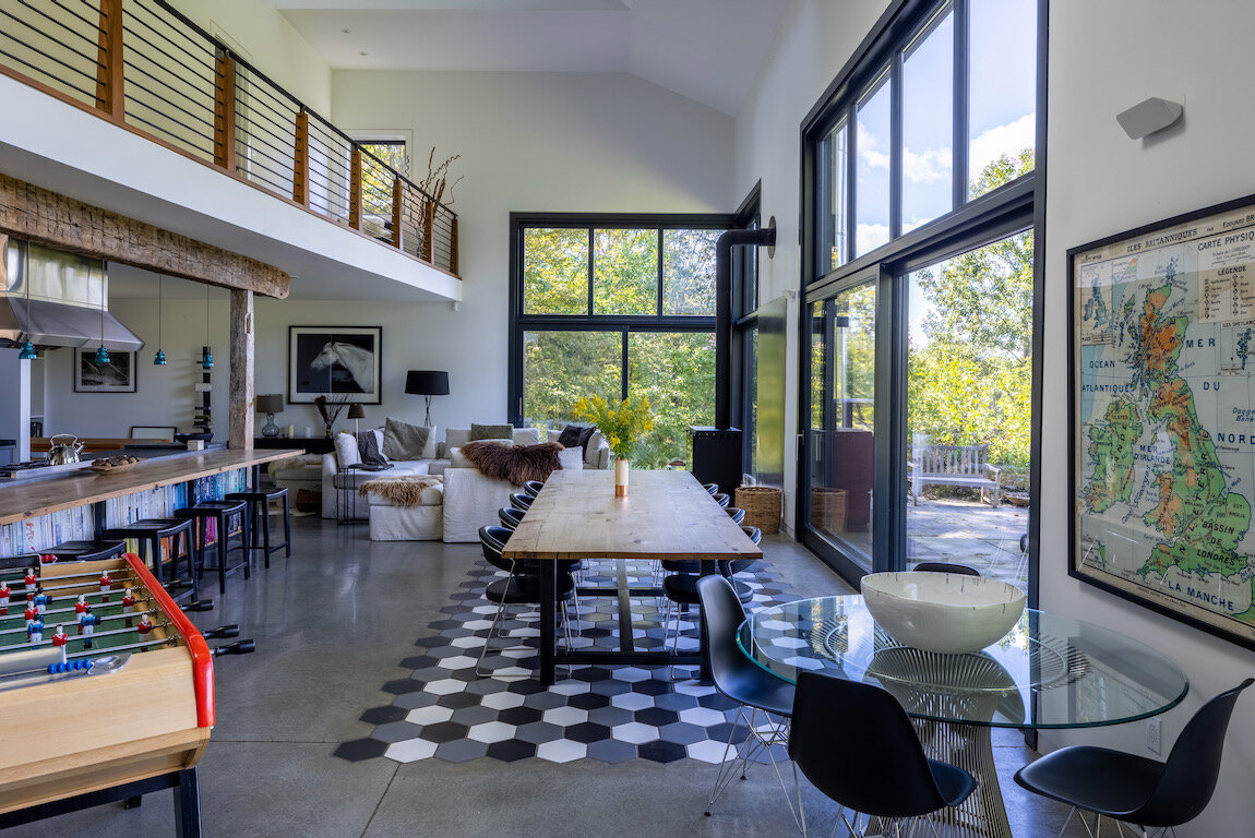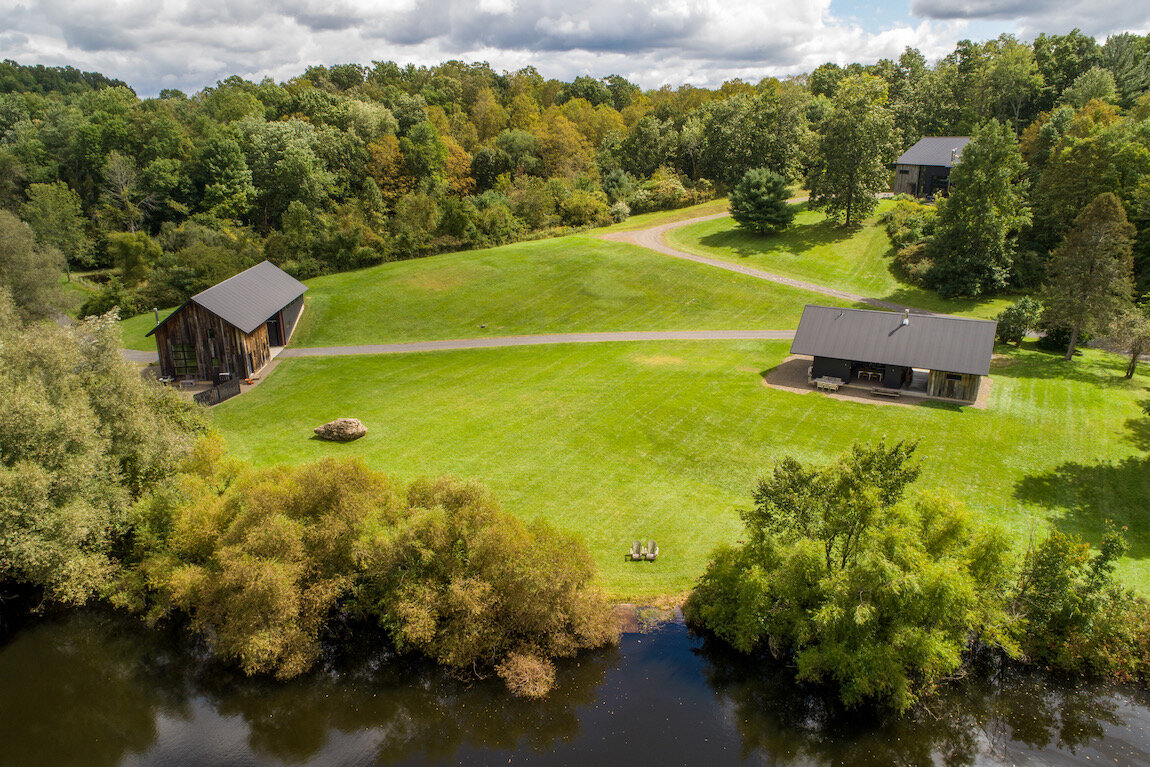 Sited on 75 acres, Little Ghent Farm offers a mix of rural and modern. Reclaimed boards from old barns on the property abut walls of glass in concrete floors. The main house has three bedrooms and four bathrooms. Up the path is a metal-roofed barn with a one-bedroom guest house. The property includes a pond and miles of trails. Listed at $3,875,000 by Select Sotheby's International Realty.