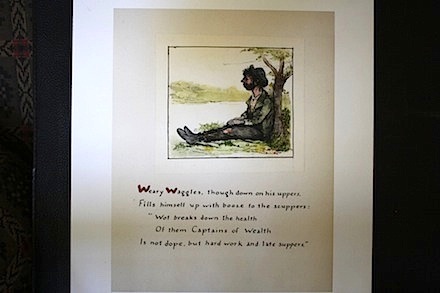 "Weary Waggles, though down on his uppers, Fills himself up with booze to the scuppers: "Wot breaks down the health, Of them Captains of Wealth, Is not dope, but hard work and late suppers."