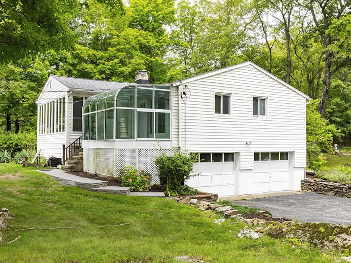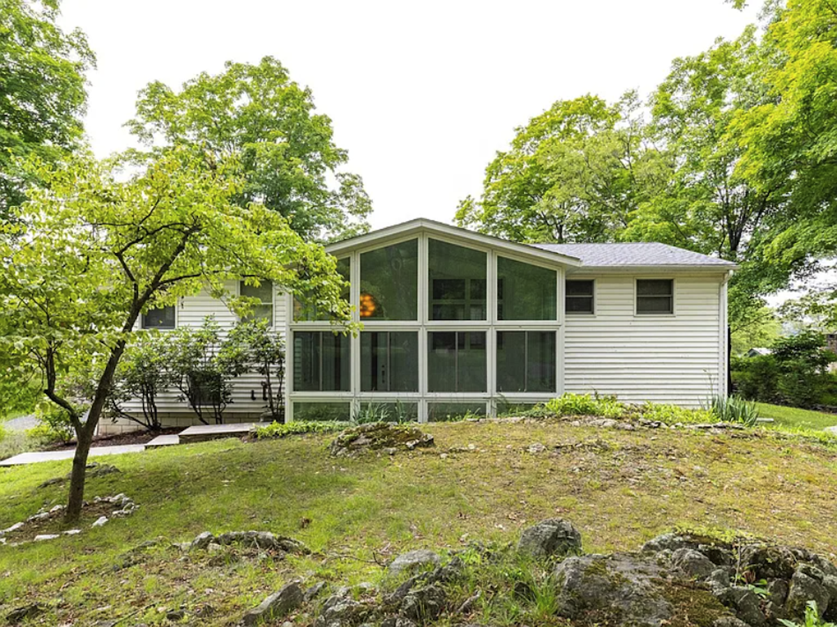 42 Curry Lane in Hyde Park, New York, has a beautiful view of the river and it’s surrounds from big glass windows. This 2,000-square-foot residence, built in 1960, features three bedrooms and two bathrooms on a 0.46-acre lot.