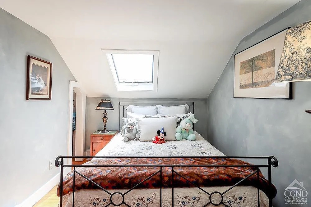 Built in 1900, it comes with lake rights and sloping ceilings upstairs that evoke a proper camp house vibe.