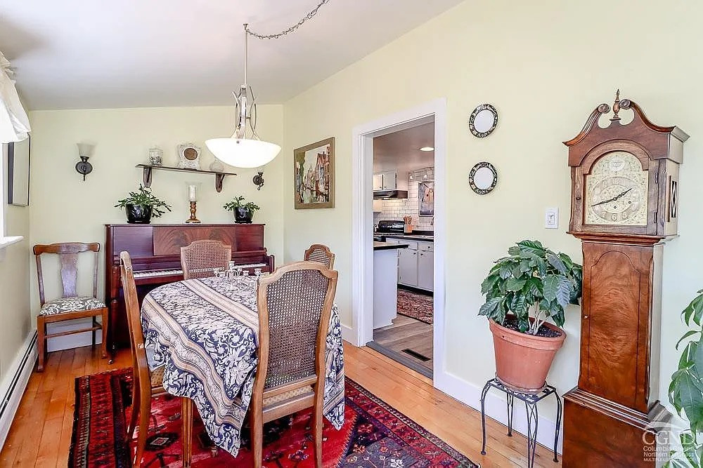 There are two bedrooms and one bathroom, a groovy vintage cedar closet, a tiny upstairs office, and a finished basement that adds another 302 square feet of space not included in the listing’s calculated total. Somehow, this house also has space for a sunroom, a chef’s kitchen, and a dedicated dining area.