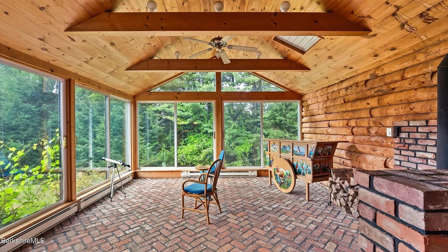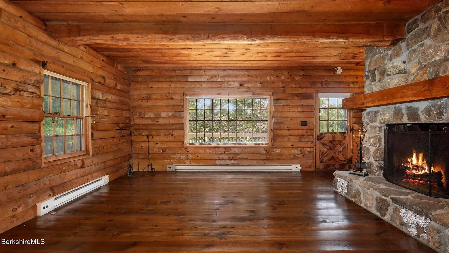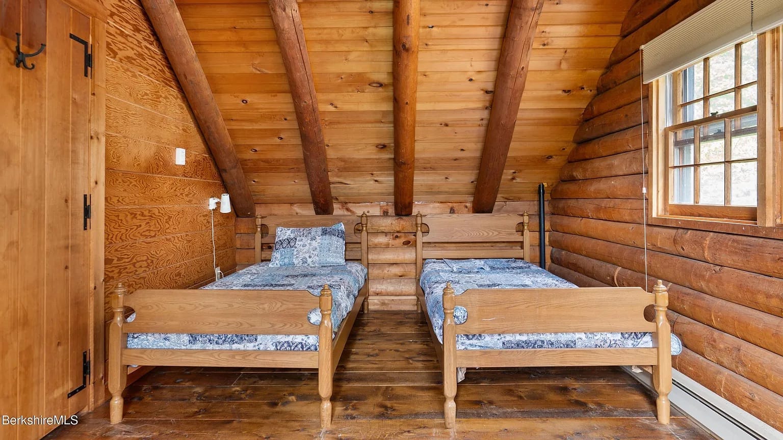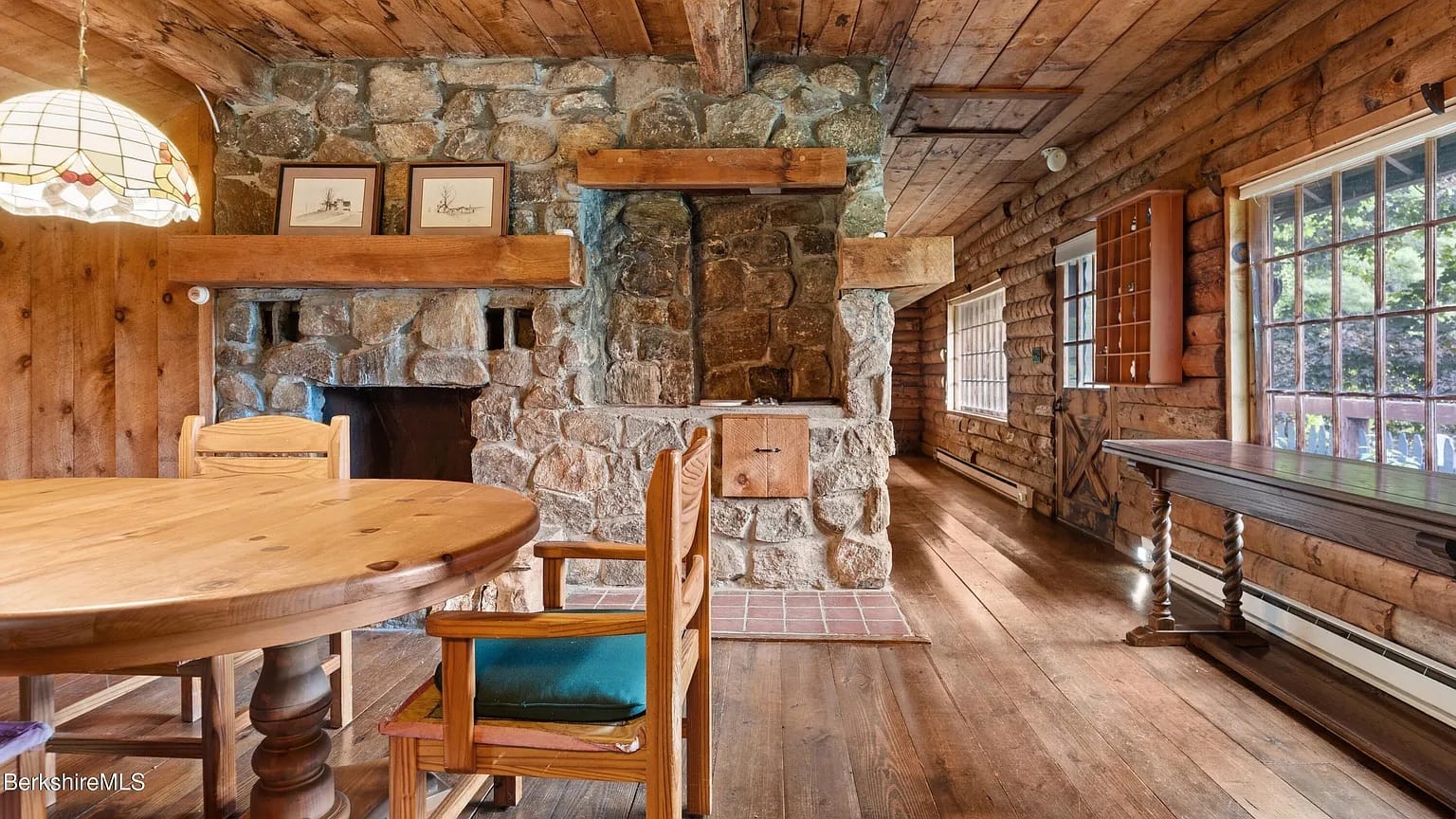 This one is a higher-end log cabin, but it retains that rustic 1970s ski chalet feel. 76 Corashire Road in New Marlborough is a 2,362-square-foot home with four bedrooms, three bathrooms, and a huge 18.8-acre parcel with Konkapot River frontage. It’s close to Ski Butternut and Lake Buel.