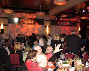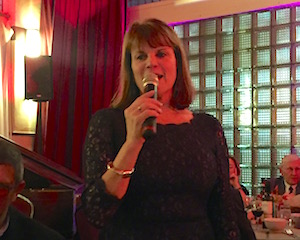 The pre-performance dinner in the Colonial Theatre's Garage; Berkshire Film & Media Collaborative executive director Diane Pearlman toasts to the honoree and speaks about their longtime friendship and work on the upcoming Berkshires-based short, A Tree. A Rock. A Cloud.