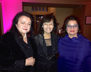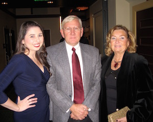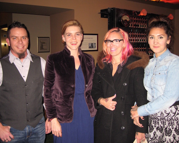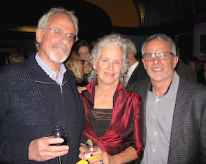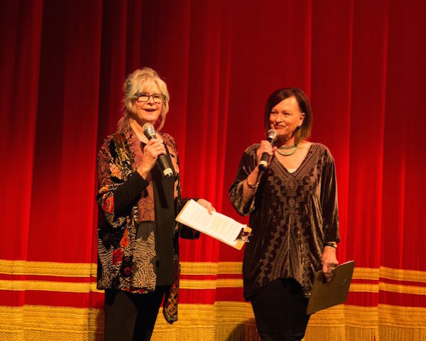 Rachel Louchen reports from Pittsfield. For the sixth year of the Made in the Berkshires festival – a three-day showcase of theater, music, dance, visual arts, filmmaking and the written word – the opening night was preceded by a gala honoring one of the Berkshires' most notable talents and a fervent supporter of the arts, Karen Allen. At the Colonial Theatre on Friday, Nov. 11, guests arrived for a cocktail hour and a chance to peruse the visual art installation, CROP, before sitting down for a dinner catered by Kate Baldwin. Throughout the meal, select attendees stood to speak about Karen; friends, former costar James Naughton and even her ex-husband all mentioned her kindness, hard work and above all, total devotion and love for living in, and producing creative work in, the Berkshires. Post-dinner, Hilary Somers Deely and Barbara Sims, co-creators of the festival, announced the night's entertainment, a performance that highlighted the upcoming weekend's activities. [Above, Karen Allen is flanked by longtime friend Tim Lovett and Barbara Schulman.]