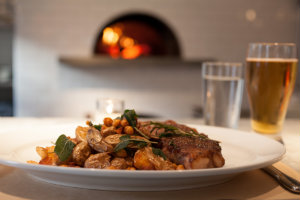 During a recent visit, we started with rich, flavorful grass-fed beef meatballs with tomato and organic polenta ($8.50), a perfectly balanced bruschetta Parma with mozzarella, prosciutto, olive oil and aged balsamic ($9.50), and a simple salad of roasted beets, Coach Farm goat cheese and arugula ($11.50) dressed with a tangy vinaigrette. The wood oven pizzas and breads are a major presence on the menu (not surprising, considering Scappin made the wood-burning oven Market St.’s focal point). Try the Caprina (fig-herb spread, Coach Farm goat cheese, pear, arugula and truffle oil, $17) or Boscaiola (mixed mushrooms, mozzarella, tomato and herbs, $16.50). They’re cooked perfectly, with crispy, thin crusts and complementary flavors that provide maximum impact. Pastas and risottos are hard to resist — they’re bursting with top-quality ingredients, and gluten-free and whole-wheat options are available. But save room; Satisfying main dishes like a slowly baked salmon with snap peas, potato puree, and black truffle vinaigrette ($26) and a local aged ribeye steak with crispy fingerling potatoes, chickpeas, sage and spicy aioli ($32) are waiting for your enjoyment, too. If you feel like exploring, try one of the specialty cocktails, such as the ginger margarita ($11) or a “Burnt Venetian," made with vodka, aperol, lemon syrup, and prosecco ($12). Italian wines dominate the wine list, but there are a few French and California choices as well. Our party’s non-drinker had a mint iced tea special that provided enough kick to beat back the early evening’s heat, and there are also non-alcoholic house made sodas ($6).