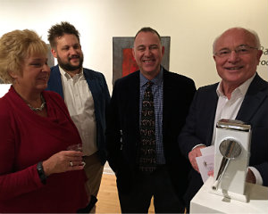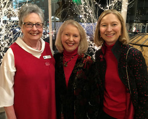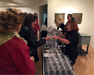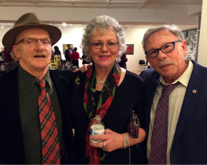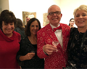 CB Wismar reports from Torrington. Billed as “festive and very merry,” the Dec. 6 "Deck The Halls" Martini Tasting Party hosted by Five Points Gallery certainly lived up to its promotion. Revelers bought tickets for the opportunity to sample, mix and mingle with fellow partygoers amid the stunning artwork at the gallery. Five Points’ mission, beyond being an active gallery presenting professional artists, is to nurture artists and empower a diverse community. FISH NWCT (Friends in Service to Humanity of Northwestern Connecticut, Inc.), the other gala beneficiary, provides the most basic human needs — food, shelter and hope — by supplying a safe and secure haven for families, individuals and veterans. A silent auction table enticed guests to add to the evening's festivities, and an exhaustive display of cocktail shakers collected by Tim Bouthillier inspired many nostalgic and appreciative comments. The big draw, however, was the amply stocked martini bar where guests could sample from a wide range of styles and flavors, all the while benefiting the local community. [Above: Judith McElhone, founding executive director of Five Points Gallery; Deirdre Houlihan DiCara, executive director of FISH NWCT, and Cara Houlihan Blazier, a volunteer with FISH.]