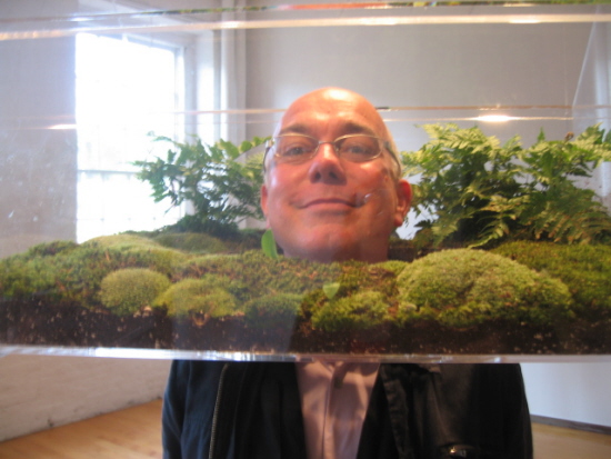 Boreas Gallery owner Scott Langenour in one Vaughn Bell's Personal Home Biospheres, 2008, which were commissioned by MASS MoCA for this exhibition.