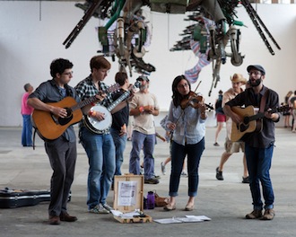 An unidentified band plays a pop-up set in one of the MASS MoCA galleries during the FreshGrass festival. Photo: Bill Wright