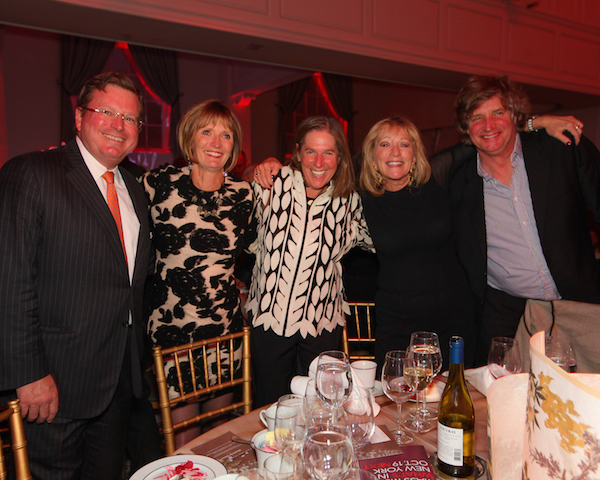 The night's auctioneer, Eric Widing, MASS MoCA's Director of Special Events Jennifer Trainer Thompson, pedaling.com's Nancy Maier, gallerist Jane Eckert, and artist Eric Forstmann.