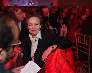 Exhibiting artist and Williams College professor, Barbara Takenaga, with IS183 Board Chair Andy Foster; 2017 exhibiting artist Laurie Anderson.