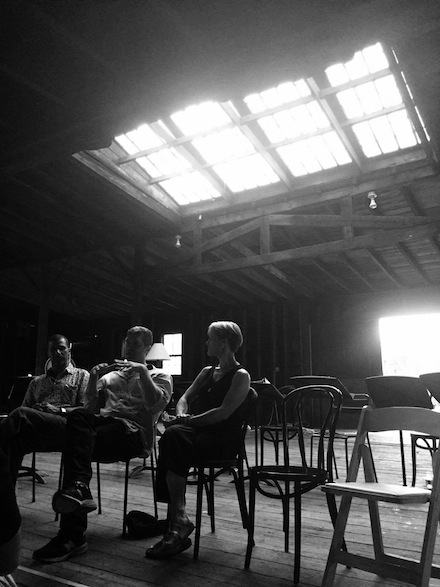 Professor Brian McAdoo, Davidson and Masterson meet in preperation for The Kept Private. Photo by Deborah Lopez.