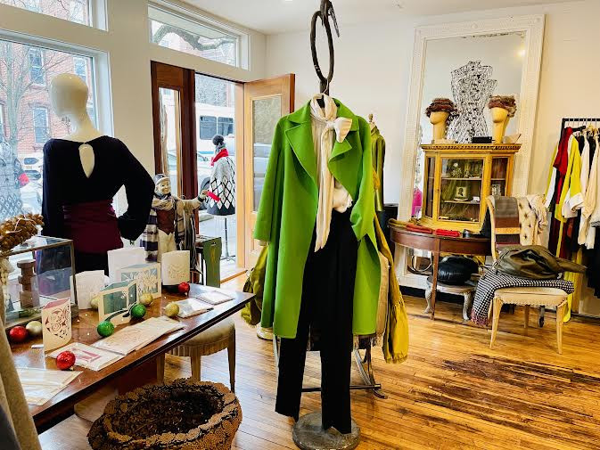 Boris opened his shop in Hudson six years ago and over the past few years, driven by a desire to simplify his life, he closed his other stores. Now 117 Warren Street is the only Michael Boris storefront in the world. It’s a humble atelier packed wall to wall with chic couture.