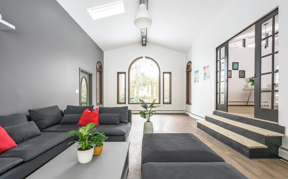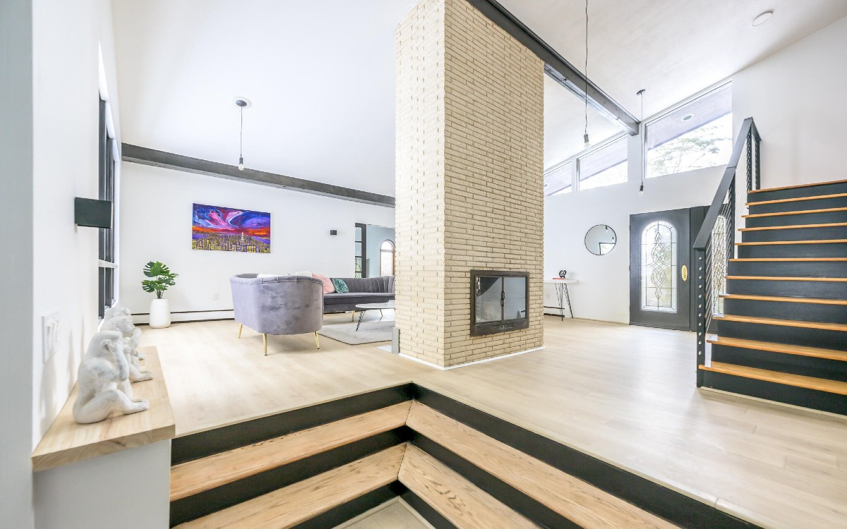 Built in 1962, this is a true midcentury modern home that's flooded with natural light. It has three bedrooms and three bathrooms, vaulted ceilings, the original two-sided fireplace and a sleek kitchen.The large dining room walks out to a stone patio and lush backyard. The bonus room serves as a play room, home gym, and home theater. Listed at $76t0,000 by Stone House Properties.
