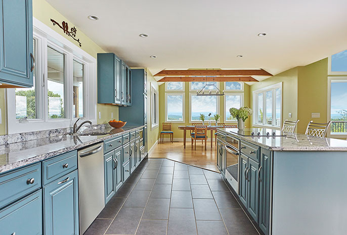 This three-bedroom, three-and-a-half bathroom house offers views of the Berkshires and Stissing mountains. The main level offers a spacious floor plan, a stone two-story fireplace, several dining areas and ample windows. The fully furnished basement, perfect for guests or an in-law suite, has its own high ceilings and radiant floors. The property also includes a heated pool and a two-story outbuilding. Listed at $1,750,000 by Gary DiMauro Real Estate.