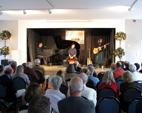 Amy Krzanik reports from Spencertown. Tomorrow, Friday, May 6, marks the 2016 opening day of Steepletop, the former home and gardens of Pulitzer Prize-winning poet Edna St. Vincent Millay. But The Millay Society threw a pre-opening benefit celebration at Spencertown Academy Arts Center on Saturday, April 30. Held on the last day of National Poetry Month, the event doubled as a celebration of the publication of two new tomes: Selected Poems of Edna St. Vincent Millay: An Annotated Edition, which includes an introduction by Millay literary executor Holly Peppe; and A Girl Called Vincent, a Millay biography for young readers by Krystyna Poray Goddu. Both Poray Goddu and Peppe, who is also a Millay Society trustee, read from their work and signed copies of their books. The centerpiece of the evening was a concert featuring Millay’s poems set to music by The Edna Project. Written by husband and wife team Liz Queler and Seth Farber, the songs were performed by the duo and their son. Proceeds from the event will help fund the ongoing restoration of Steepletop, which Millay and her husband, Eugen Boissevain, purchased in 1925 and Millay lived in until her death in 1950. The Auserlitz property, which opened to the public in 2010, offers tours of the house and grounds (which include Millay’s gravesite), bird walks, access to trails and picnicking spots, and an herb sale coming up on May 21 and 22. Above, The Millay Society trustees, Greg Vogler, Eileen Fusco, Holly Peppe and Mark O'Berski, pose in front of a portrait of the author.