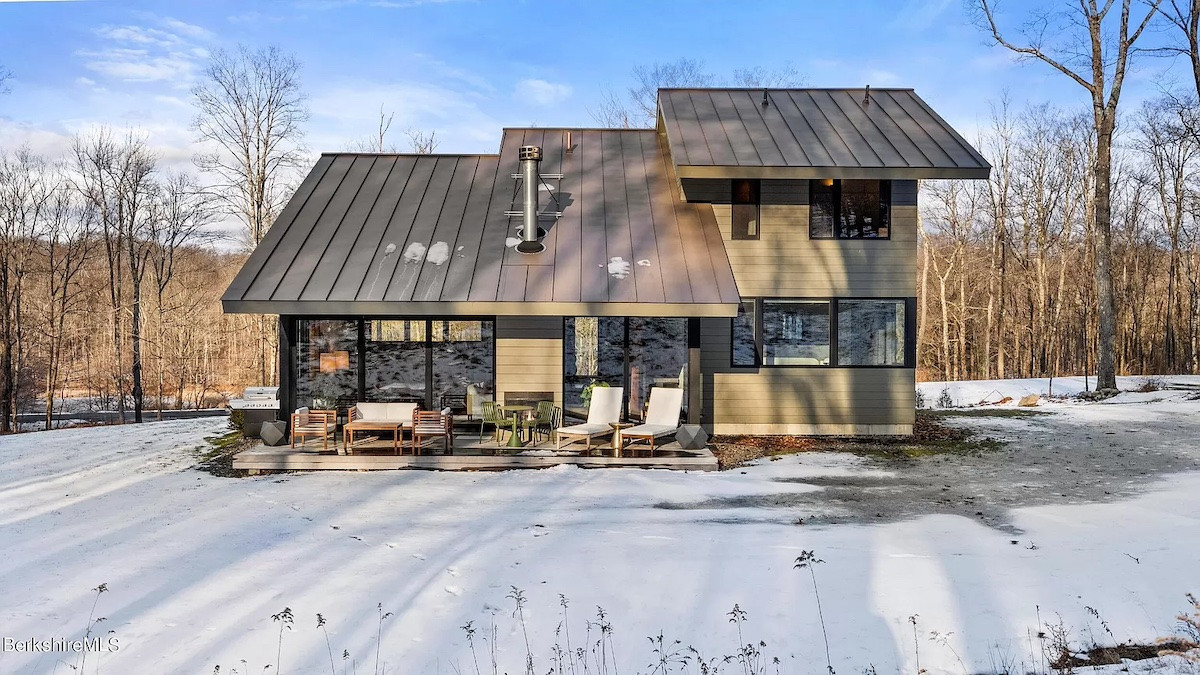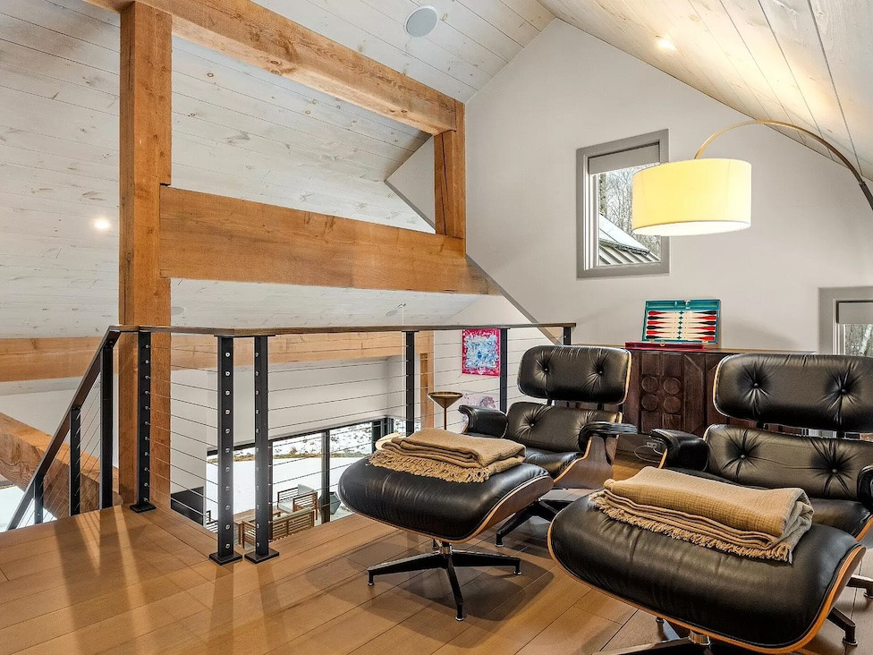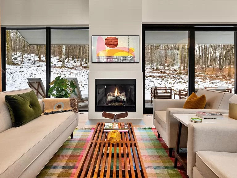 In Austerlitz, an elegant post-and-beam country home built in 2015 has three bedrooms and three bathrooms. There is voluminous main living space and a back deck with a fireplace. Recent upgrades include a whole house generator, kitchen cabinets, California Closet systems, and a finished basement. Listed at $1,300,000 by William Pitt Julia B Fee Sotheby's International Realy.