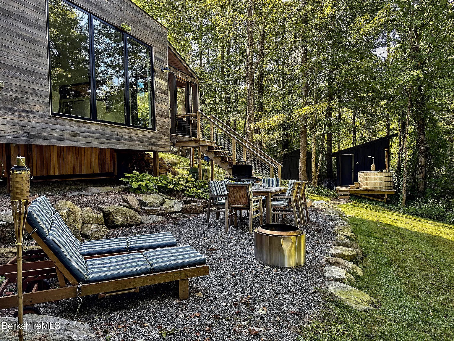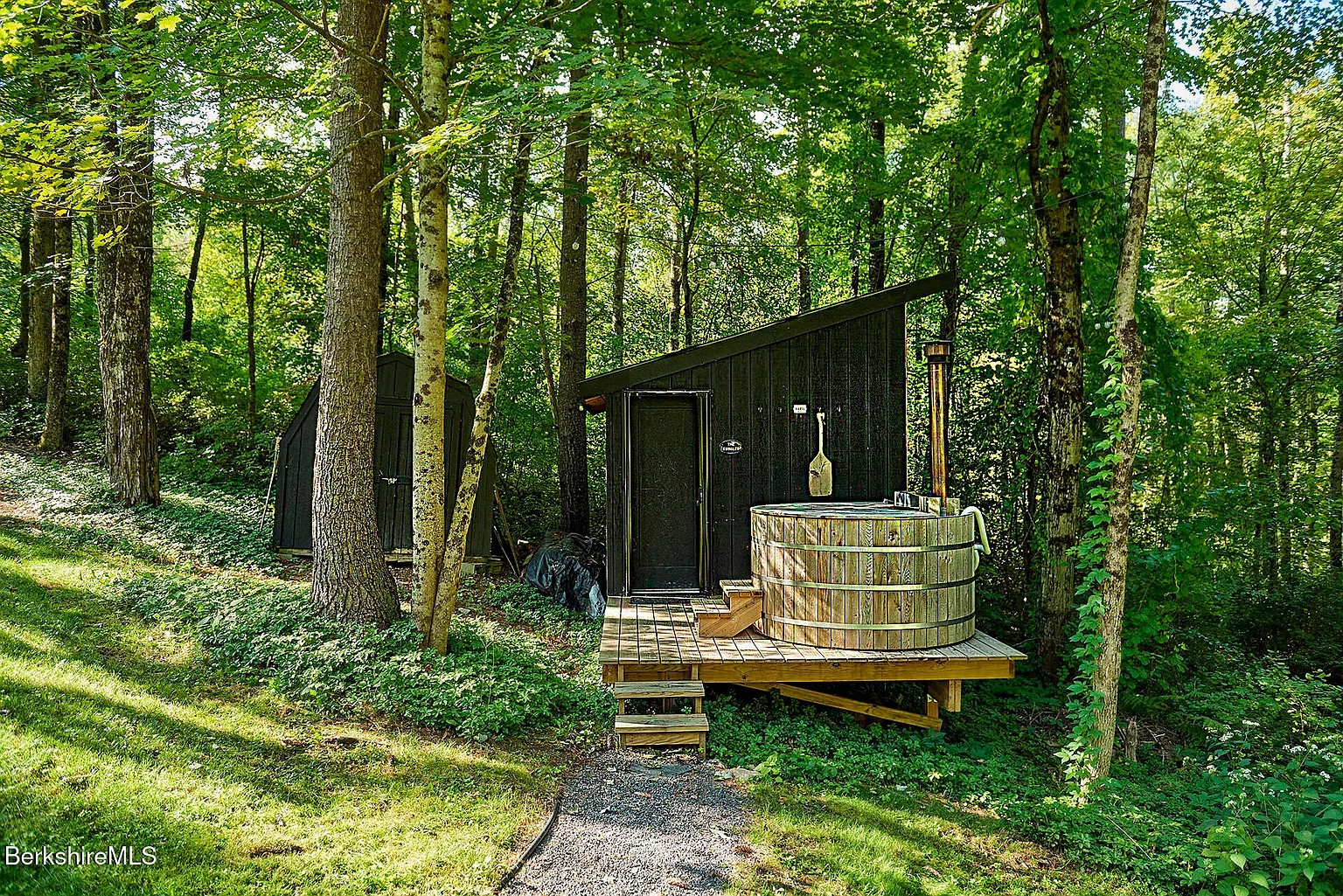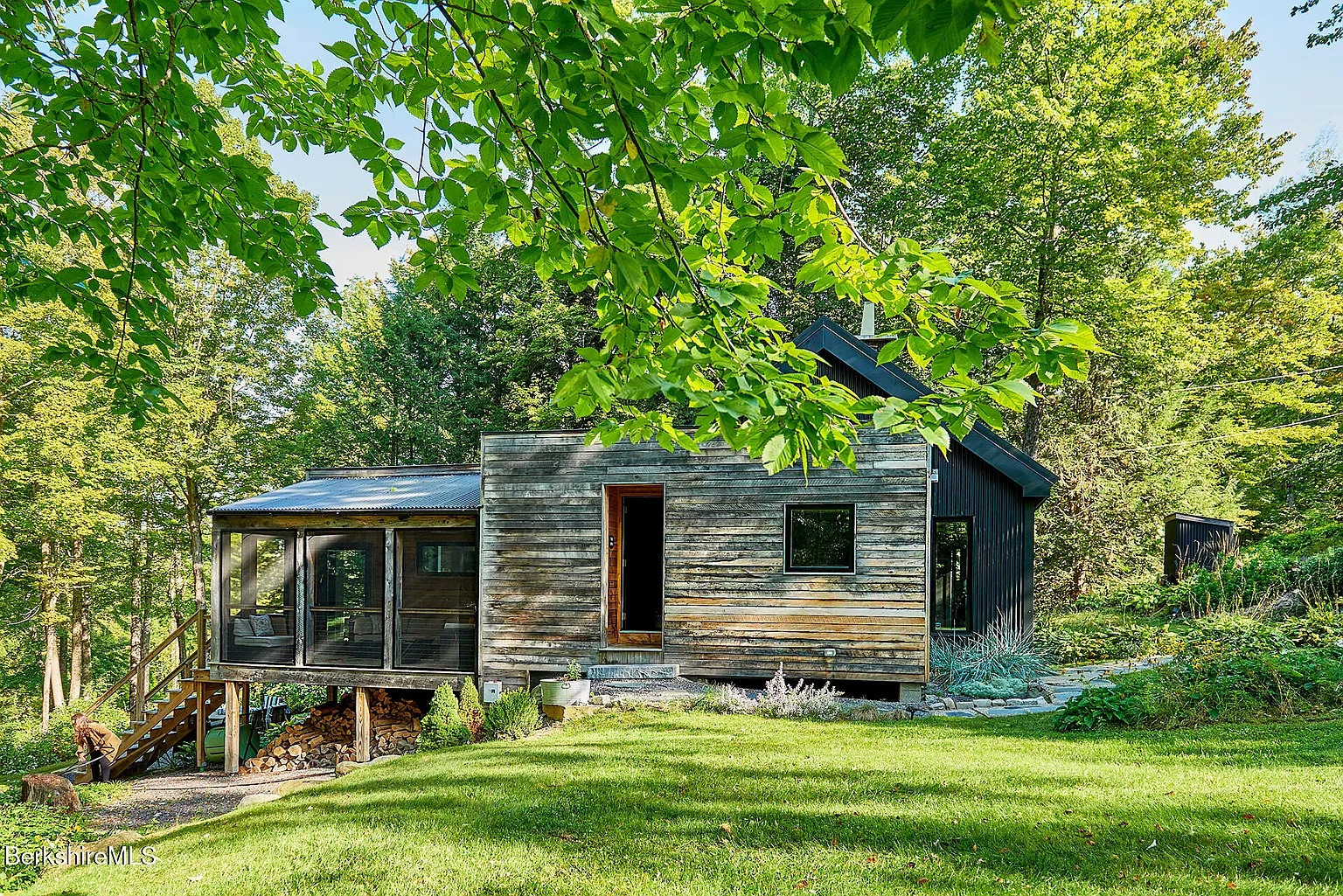 A major addition and renovation was completed here in 2022, including a wall of glass windows that offer natural light and woodsy views. The main house has a cute loft area, screened in porch, and a wood stove in the center of the main living space made of big rocks. A detached 10-by-10 study with its own deck and an additional power-equipped cottage add to the on-property perks.