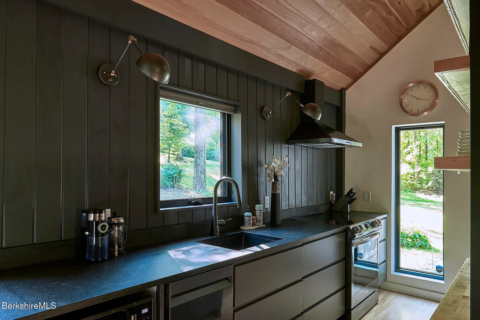 A major addition and renovation was completed here in 2022, with a wall of glass windows that offer natural light and woods