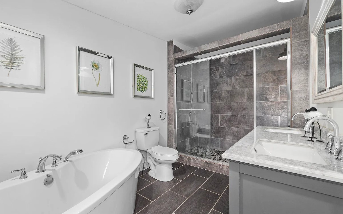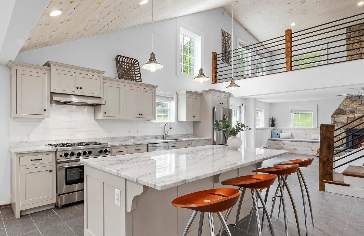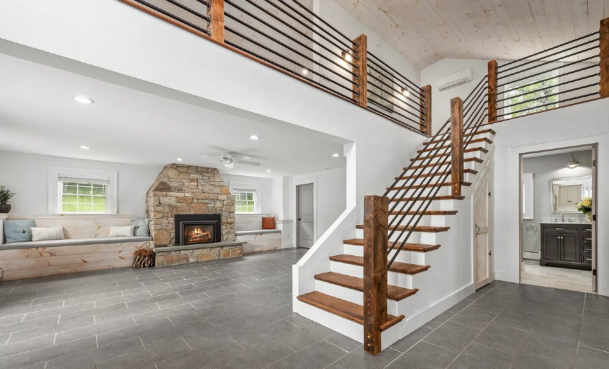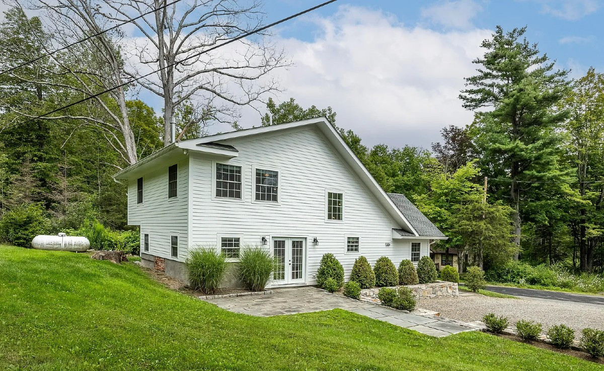A nearly new construction (2020), this home in Ancram offers two bedrooms and two bathrooms, a high-end kitchen, a huge stone fireplace in the living area and ceramic tile floors. Outside, the bluestone patio extends the living space. A detached, oversized garage provides additional space for a studio or workshop. Listed at $675,000 by Four Seasons Sotheby's International Realty.