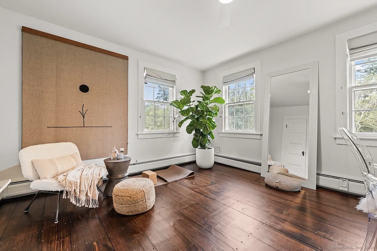 This is a lovely Litchfield County house with lots of room to roam! 21 Route 7 in West Cornwall is set on 13 acres and includes more than 1,000 square feet of direct river frontage. A charming red three-stall barn anchors one edge of the property, while an orchard and lawn stretches toward the water.