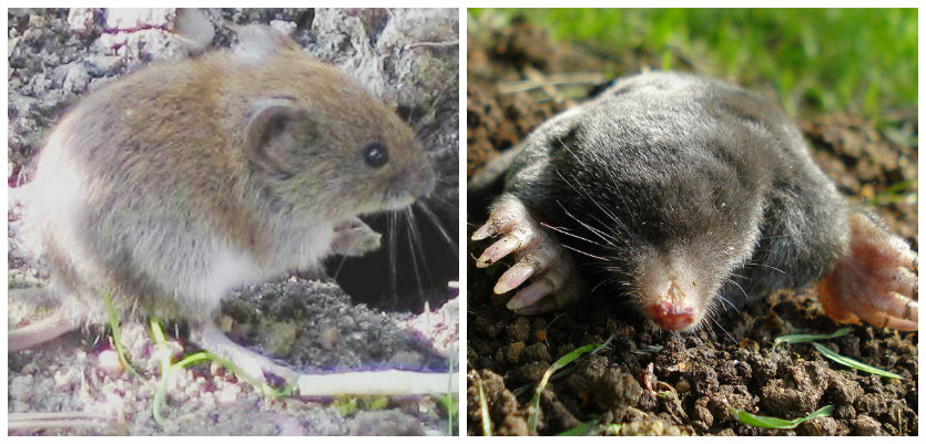 That's a vole on the left, a mole on the right. (Photos: Wikipedia)