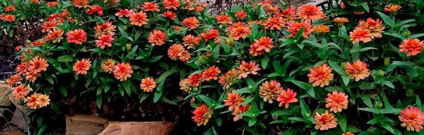Tip 3: Though some gardeners poo-poo mixed borders, I am a big proponent of using some annuals with perennials to keep the show going and provide consistent interest. Even though you have to replace them each year, these workhorses more than justify their cost. Low-maintenance dwarf zinnias, a frequent go-to of mine, are excellent fillers or front-of-border plants and, once they start to bloom, perform until frost with almost no deadheading, creating 15-inch high mounds of profuse flowers. They come in white and lots of hot colors (orange, cherry, red, yellow, salmon, etc.) and can be found under series names like ‘Profusion’, ‘Magellan’ and ‘Zahara.’
