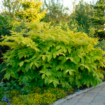 Aralia cordata ‘Sun King’, Japanese aralia or Spikenard. (Photo courtesy Walters Gardens)