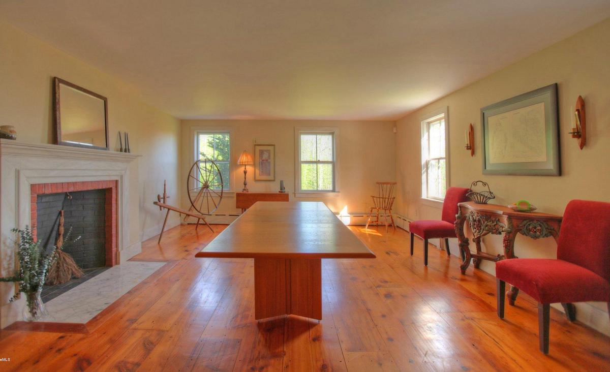 Located on 44 acres in Tyringham, Morningside Farm has a circa-1800 main house with handcrafted period details such as exposed post and beam timbers, Colonial-era hardware and woodwork, hardwood floors, and millwork. Extensively renovated in 2005, the house has a brand-new kitchen, plus dining room, living room, library, seven bedrooms, and four-and-two-half bathrooms. Updated systems include the plumbing, heating, and electrical, as well as redone roofs and siding. A large three-car carriage barn with a guest suite, and a pool complete the property. Listed for $2.2 million by Brockman Real Estate.