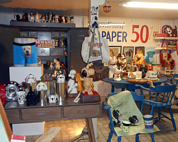 The back room is loaded with canine paraphernalia.
