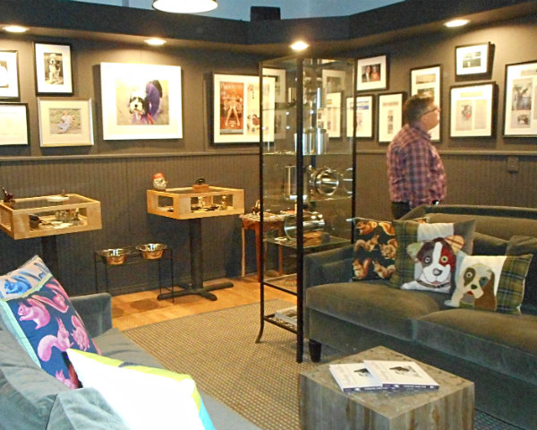 Lisa Green reports from North Adams. You don’t have to be a dog lover to enjoy the Museum of Dog, but it would probably help, since you’re going to be surrounded by massive amounts of dog-related memorabilia. On Friday, April 27, the Museum of Dog, located in an historic building, opened its doors for a preview party prior to its official opening the next day to coincide with the beginning of ArtWeek. David York founded the museum as a tribute to dogs (and a way to exhibit his personal collection). Along with the mind-boggling mass of canine-related “things,” including original Wegman photographs, vintage dog collars, dog-inspired furniture, jewelry, books and old-timey dog products, the MOD plans to produce special exhibitions, and introduced its first with the photos of fine art dog photographer Jesse Freidin [above], on hand to sign copies of his book “Finding Shelter.”