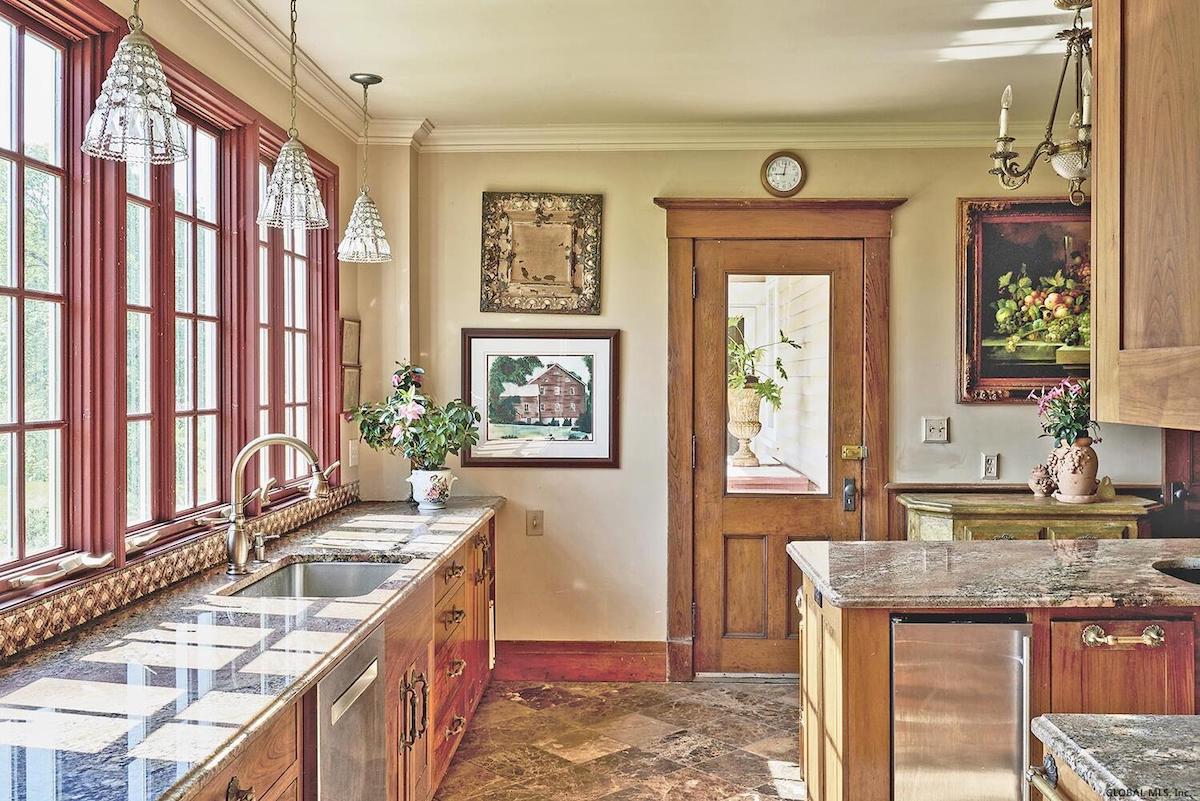 Listed on the National Register of Historic Places, this Stuyvesant home housed three generations of the first family until 1980. The Colonial Revival, built in 1900, has five bedrooms and four bathrooms, a deep center hall, pockets doors and built-ins. Outside there are many porches and stone patios, mature trees and perennial gardens. The property has been approved for B&B use. Listed at $1,495,000 by The Kinderhook Group.