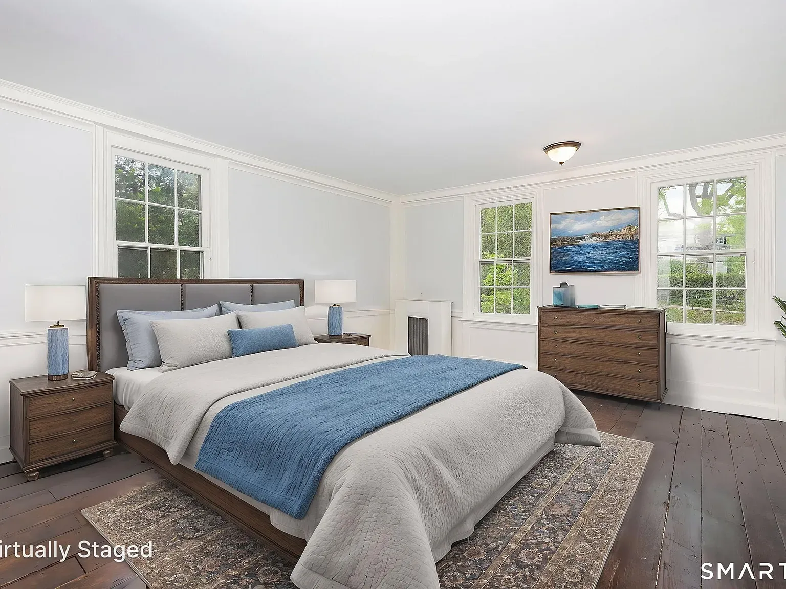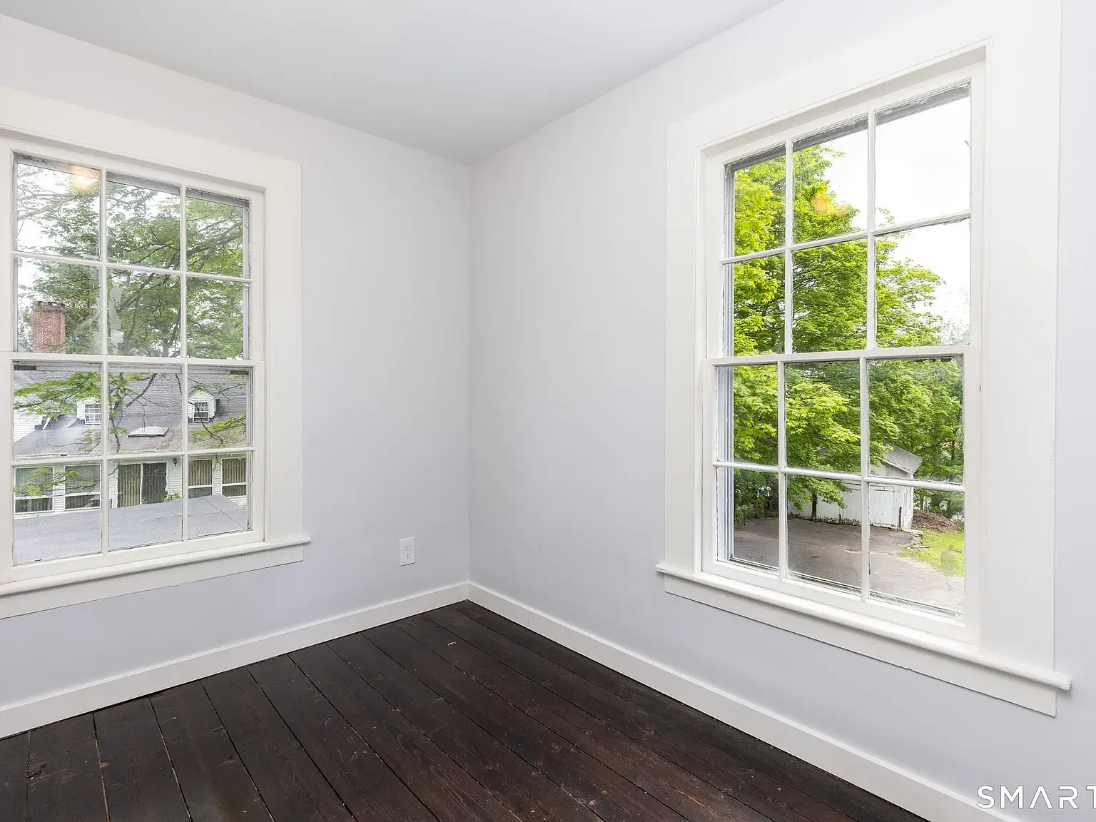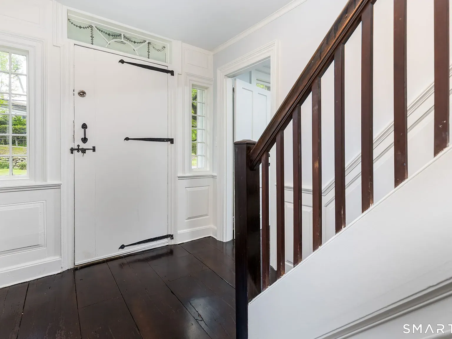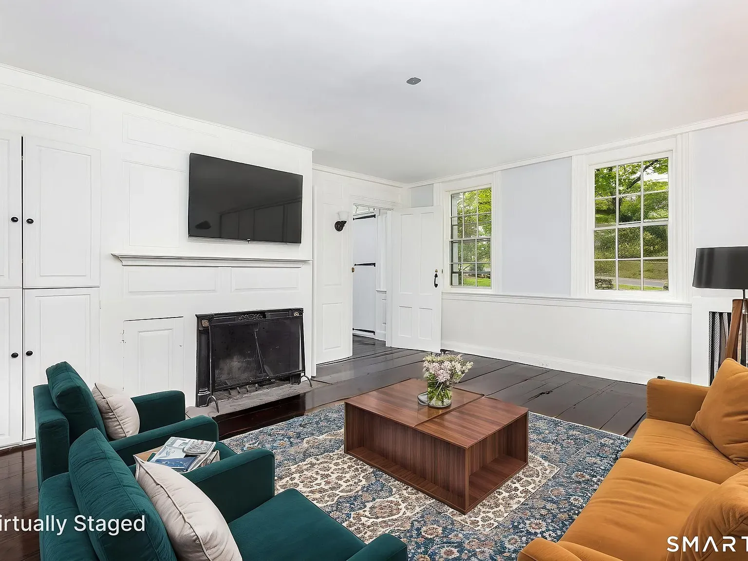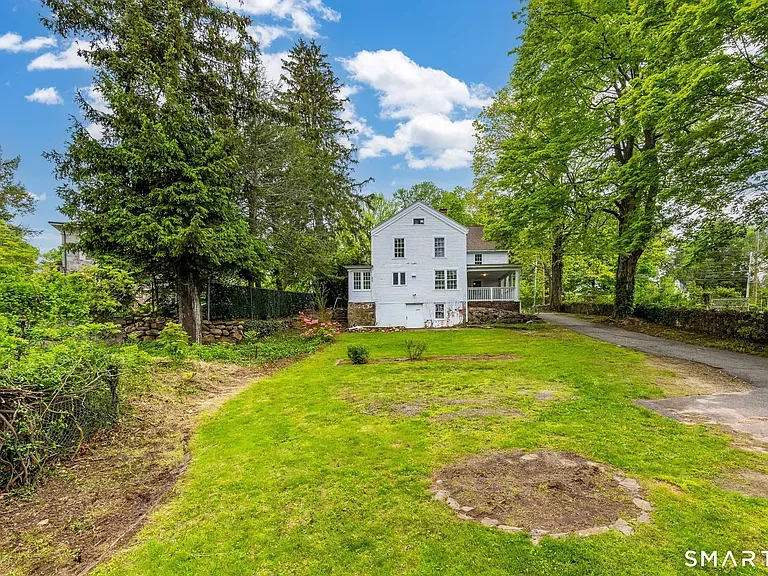 Set on 0.43 acres with old stone walls and a private drive, the 2,948-square-foot home unfolds with four bedrooms and 1.5 baths across two stories of classic proportions. Inside, wide-plank hardwood floors and extensive custom built-ins speak to the house’s heritage, while two fireplaces anchor relaxed living and gathering spaces.