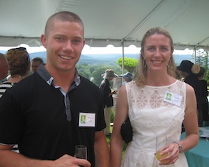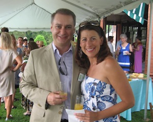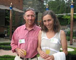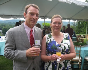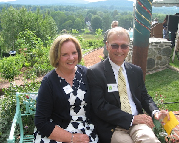 Rachel Louchen reports from Stockbridge. Floral frocks, sun hats and linen suits — Berkshires residents really know how to do a garden party justice. On Saturday, July 25, Naumkeag hosted its annual afternoon garden party, which raised proceeds for ongoing garden restoration work at the National Historic Landmark. Guests were greeted by a cloudless blue sky and incredible mountain views as they enjoyed bellinis by Spirited, SoMa Catering's hors d'oeuvres and sweets from Chocolate Springs. The beautiful location was enhanced by live jazz next to the Chinese gardens and Berkshire Pulse dancers performed on the expansive lawns. Guests took advantage of the favorable weather to wander around the one-of-a-kind gardens, white birches, sculptures and the famous blue steps (four flights of stairs with a series of fountain pools). Was the big turnout for the annual event really because people wanted to support the historic site or did everyone just want to see one of the best views in the Berkshires? Above, Joe McNay and host committee member Paula Moats.