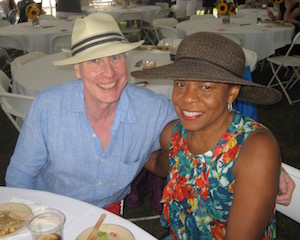 Rachel Louchen reports from Lakeville.North East Community Center's (NECC) annual Chef & Farmer brunch is always a well-attended event and, this year, it sold out more quickly than ever. On Sunday, July 31, the Hotchkiss School's bucolic Fairfield Farm (featuring jaw-dropping views of rolling fields, ponds and mountains) was the location for the fundraising event that had a lively spin this year — a food challenge. Ten local restaurants, farms and food vendors put out a breakfast spread, and a panel of local judges including Hammertown'sJoan Osofsky and Mike Harney of Harney & Sons had the enviable task of choosing the best brunch, while the 200 guests happily tasted it all. The fundraiser benefits a variety of programs at NECC, adds vegetables to its summer "Lunch Box" meal program, covers camp for local children, and buys milk and eggs for food pantry families. The brunch was so successful there weren't even tickets available on standby, so advice for next year: buy your ticket early. [Event organizer Mimi Ramos Harney and NECC executive director Jenny Hansell.]