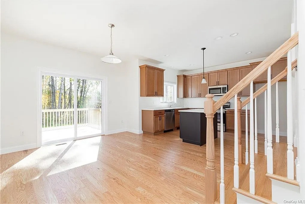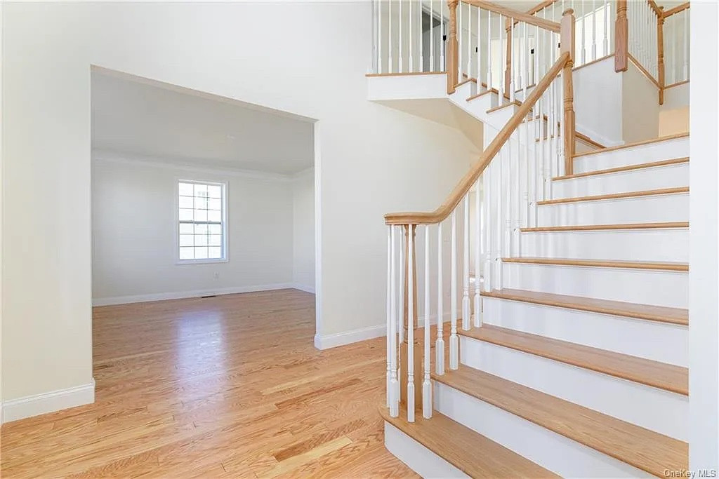 This new-construciton home is located within the community of The Grove at Sleight Farm in Poughkeepsie. It has four bedrooms and three bathrooms, a two-story foyer, a second-floor laundry, two-car garage and additional space provided by the unfinished basement. Listed at $699,900 by Exp Realty.