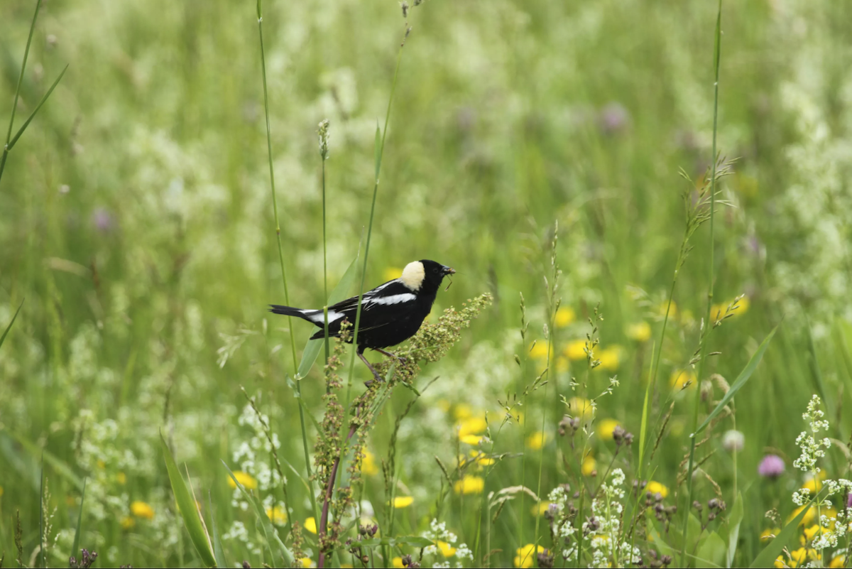 Male bobolink in pasture by Farmscape Ecology Program